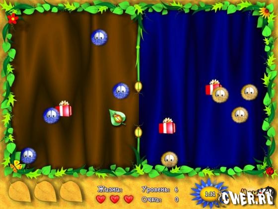 Добро пожаловать в мир Пушариков! Перед Вами два поля разных цветов и две команды Пушариков соответствующих цветов. Вам необходимо, двигая травинкой, помочь желтым Пушарикам попасть на желтое поле, а синим - на синее... Естественно вам будут мешать разные фанаты которым понравилась ваша игра, а некоторые фанаты будут и помогать различными способностями. Также не обошлось без бонусов которые вам помогут в достижении цели. А мастерам игры достанутся разные награды, например кубок за прохождение 10 уровней только с золотыми медалями.