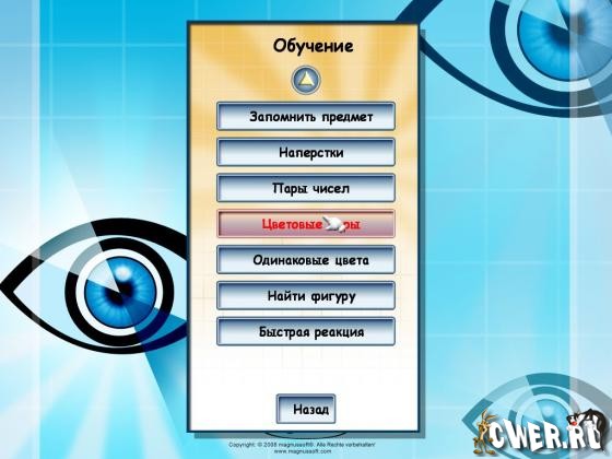 Воспользуйся возможностью потренировать глаза и ум. Специальная система упражнений позволит тебе расслабиться, проверить зрительную память, скорость реакции, сообразительность и потренировать зрение.