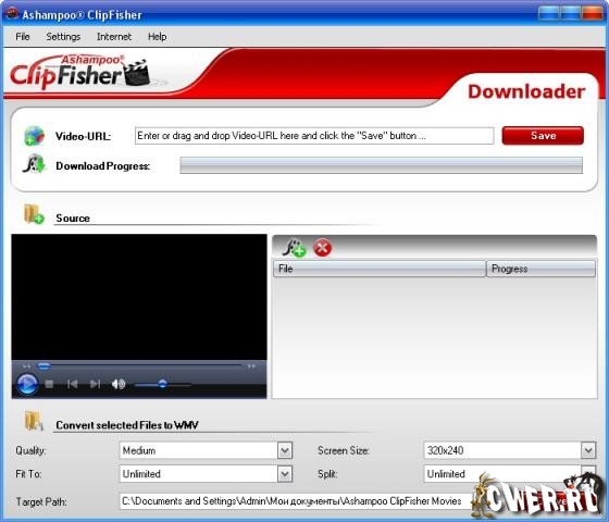 Ashampoo ClipFisher - программа для просмотра и сохранения потокового видео из интернета на компьютере. Для работы с утилитой достаточно указать веб-адрес потокового вещания и программа сохранит выбранный фильм в форматах FLV или WMV. Кроме того, программа позволяет указать качество, с которым будет сохраняться видео, а также ограничить размер конечного файла, при достижении которого, запись будет прекращена. При необходимости средствами утилиты можно просмотреть загружаемый видео файл.