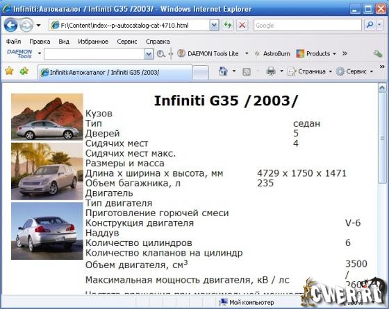 На этом диске вы найдете информацию о более чем 5 тысячах автомобилей, более чем 120-ти различных марок. Вы сможете ознакомиться с обзорами, тестами и характеристиками большого количества автомобилей.