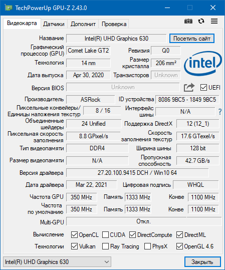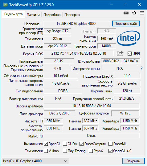 Что-то слабовато. Либо не полностью совместима с ноутбуками и с интегрированными видеокартами. Не все данные показывает: