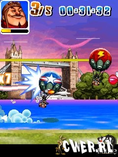 Hot balloon race - увлекательные гонки на воздушных шарах. Смело прыгай в корзину и включай горелку, небо зовет! Размеры экранов: 176x220, 240x320.