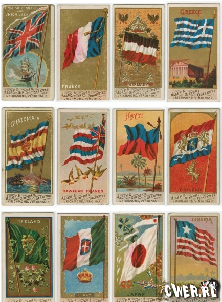 Собранные в едином файле американские винтажные открытки с изображениями флагов государств того времени (например такого как United States of Columbia) в неплохом качестве.