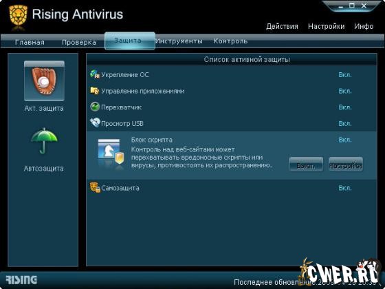 Rising Antivirus 2009 Free - бесплатная антивирусная программа с многоязычным интерфейсом (поддерживается английский, немецкий, русский и китайский традиционный). Обеспечивает защиту компьютера от всех видов вирусов, троянов, сетевых червей, руткитов (Rootkits) и других вредоносных программ.