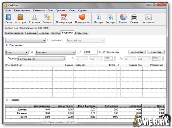 • поддержка учета Всего Бюджета с настраиваемым калькулятором