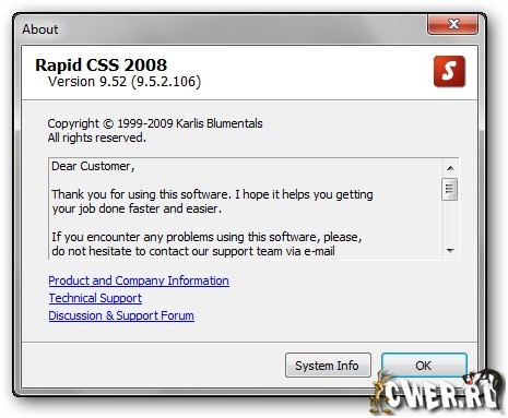Скачать программу Blumentals Rapid CSS 2008 9.5.2.106 (4,44 МБ):