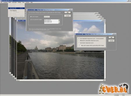 Tone Mapping – тональная компрессия (сжатие динамического диапазона снимка по своим настраиваемым алгоритмам для приведения его к стандартному 8-ми или 16-ти битному формату для последующего использования). Нужно заметить, что здесь можно сделать тональную компрессию и без промежуточного создания HDR файла. Результаты будут при этом почти похожи, но… только почти. Дело в том, что при применении тональной компрессии без создания HDRi информация о цвете будет заметно утрачена и в области глубоких теней и светов может быть практически потеряна. То есть темные деревья могут оказаться черными, а бледно голубое небо просто серым. Если вы планируете создать монохромный конечный файл, то этим можно пренебречь, но в данном случае это не целесообразно. Опять же при создании HDR файла вы сможете наглядно убедиться, что правильно выбрали эксповилку, в противном случае могут образоваться провалы, о которых я говорил выше и вам будет трудно понять причину не очень удачной обработки в Tone Mapping . Так что, в любом случае, особенно в начале вашей работы, всегда создавайте HDR. Можете его не сохранять, а использовать только как визуальный индикатор правильности брекетинга. Нажимаем Ctrl+G, в ниспадающем меню отобразятся открытые файлы (можно операцию выбора файлов сделать и в этом меню, минуя предварительное открытие). После нажатия ОК в следующем меню вам предоставляется выбор кривых для создания HDR. Наилучший результат получается при использовании стандартных кривых (по умолчанию), хотя можете и поэкспериментировать с их выбором. Наконец, установите галочку в меню Align LDR images before generating HDR Image (выровнять изображения перед созданием HDRi ) если используете обычный брекетинг.