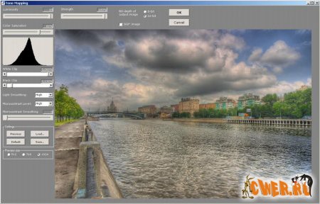 Если дать короткий совет, то старайтесь удержать командами White clip и Black clip гистограмму в рамках разумного, не обрезая очень сильно тени, поскольку полученный файл будет иметь чуть больший контраст, чем вы видите – это некоторая особенность программы. Вам остается только выбратьразрядность файла (я предпочитаю для последующей обработки 16 бит) и нажать ОК.