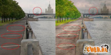На первом, исходном, изображении хроматическая абберация не очень заметна, хотя съемка производилась широкоугольным объективом SIGMA AF 15-30. А вот на конечном снимке она просто лезет в глаза. Тональная компрессия усиливает все подобные дефекты. Бороться с эти трудно, тем более на цифромыльницах, поскольку их оптика значительно слабее, чему зеркальных камер, особенно на краях кадра. Я не говорю о борьбе с ними в редакторе, достаточно сильно (правда с некоторой потерей четкости), этот неприятный эффект можно ослабить применением фильтра Lens Correction. Просто при съемке учтите это и, если это возможно, выстройте композицию так, что бы можно было процентов 30 откадрировать, поскольку эффект особо виден именно на краях кадра.