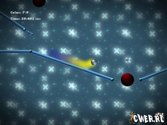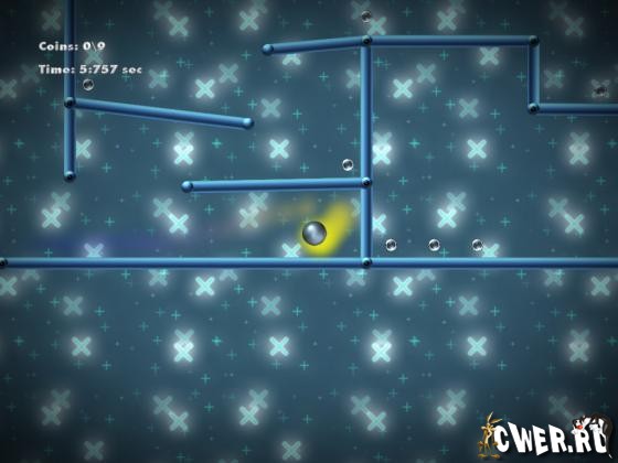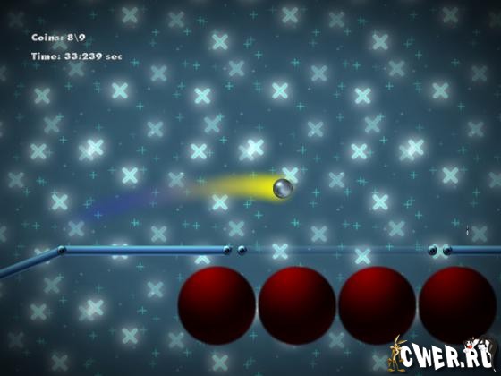 Уровни представляют собой набор физически-активных объектов (в том числе тянущиеся, рвущиеся, упругие, статические и динамические, опасные для жизни и другие..), с которыми взаимодействует игрок (шар) и другие объекты (теже монетки,например,в некоторых уровнях будут "убегать" от игрока).