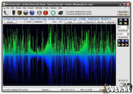 - MP3 Stream Editor основан на BASS звуковой системе (воспроизводите неограниченное количество MP3 одновременно, настраивайте скорость воспроизведения и громкость по отдельности).