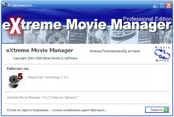 Скачать eXtreme Movie Manager 7.0.2.5 Deluxe Edition (32,37 МБ):