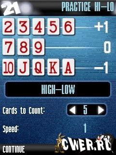 Игра, сделаная по мотивам фильма 21, предлагаетв вам опробывать себя в качестве игрока блэкджека, в игре так же как и в фильме нужно считать карты для того чтобы одержать победу. В классной комнате игроки изучают различные технологи счёта карт. После этого вы играете в реальный блэкджек, используя полученые навыки, для выигрыша крупной суммы денег. Размеры экранов: 128x128, 128x160, 176x208, 176x220, 208x208, 240x320.