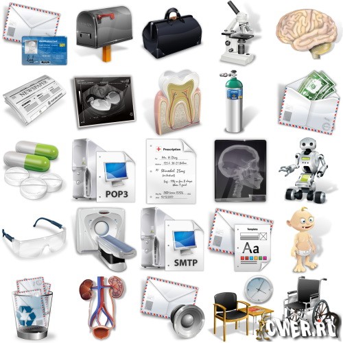 В набор включены иконки серии Jobs, Mail и Medical.