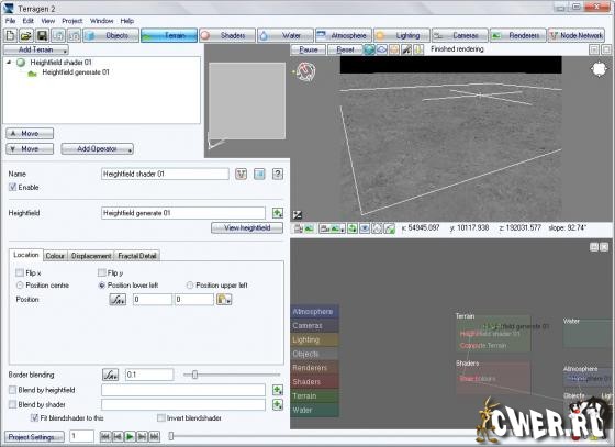 Terragen - это уникальная программа, которая генерирует ландшафты приближенные к реальности. Программа дает контроль над флорой, озерами, океанами, ландшафтами, реками, погодой, солнцем, луной и звездами. Гибкость программы позволяет создавать действительно отличные друг от друга ландшафты. Качество получаемых ландшафтов на самом высоком профессиональном уровне: гигантское разрешение, реалистичный вид, эффекты и прочее. Картинки можно записывать как последовательность, чтобы использовать в дальнейшем для записи в видео. Моделирование окружения происходит процедурными методами - окружение создается наложением ряда моделей и эффектов, причем вы можете динамически реорганизовывать эту цепь эффектов и настраивать множество параметров каждого эффекта. Для разработчика компьютерных игр данная программа будет полезна в первую очередь как источник получения фонов с необычайно красивым видом.