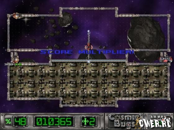 Игра, похожая на увлекательные классические игры Jezzball и Qix. Но это сходство невелико, ведь в Cosmic Bugs у каждого уровня своя форма, графика отрисовывается в 3D, звук записан в цифровом формате, и к тому же добавлены новые противники и множество бонусов.