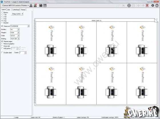 FinePrint - многофункциональный драйвер для принтеров, значительно расширяющий возможности любых принтеров при печати документов: предпросмотр, печать нескольких страниц на одном листе, распечатка брошюр, автовставка заголовка и "подвала", создание фирменных бланков, подложек, рамочек и многое другое. FinePrint работает со всеми моделями принтеров, являясь, по сути, многофункциональным универсальным драйвером принтера с удобной графической оболочкой для управления им. Еще одна полезная возможность - допустимость использования нескольких преднастроенных виртуальных принтеров. К примеру, один будет автоматически распечатывать брошюры, а другой - печатать текст на фирменном бланке. При использовании FinePrint значительно уменьшаются затраты на печать, в то же время общая работа принтера усиливается.