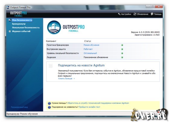 • для новичков Outpost Firewall Pro предлагает всестороннюю помощь в использовании обширных возможностей программы наилучшим образом, в то время, как продвинутые пользователи оценят богатство возможностей контроля и настраиваемых параметров, которые они могут установить в соответствии со своими требованиями.