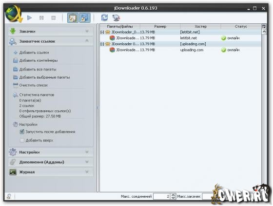 Скачать JDownloader 0.6.193 (13,7 МБ):