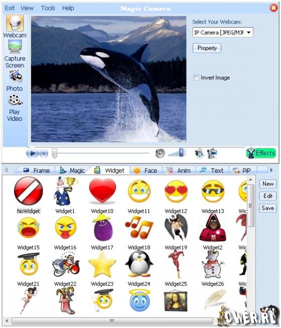 Magic Camera - виртуальная веб-камера. Программа создает фотоснимки, записывает видео и для этого вам вовсе не нужна настоящая вэб камера. Заранее подготовленный видеофайл будет передан, и ваши коллеги или друзья будут думать что сигнал идет с настоящей веб-камеры. Благодаря Magic Camera вы сможете показывать видео демонстрации, отправить снимок вашим друзьям в реальном времени. Подходит для всех наиболее популярных программ: MSN Messenger, Yahoo Messenger, AIM, ICQ, Camfrog Video Chat, Skype и т.д.