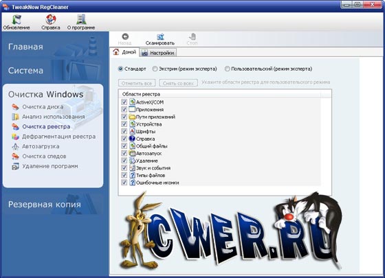 TweakNow RegCleaner помогает очистить реестр от ненужных записей. Все приложения, с которыми вы работаете, при деинсталляции должны убирать все сделанные ими записи в системном реестре. Однако очень многие программы этого не делают. Из-за этого реестр переполняется ненужными записями и разрастается в размерах, что, в свою очередь, приводит к замедлению работы системы. TweakNow RegCleaner быстро сканирует реестр, находит неиспользуемые значения и удаляет их. При этом программа создает файл отката, который поможет восстановить исходные значения в случае, если работа программы вас не устроит.