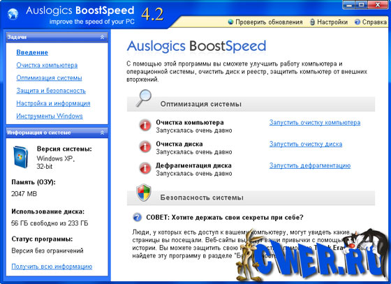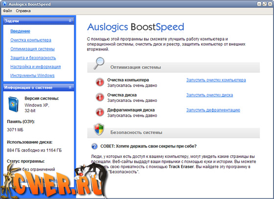 Обновилась Auslogics BoostSpeed. Программа оптимизирует компьютерную память, ускоряет загрузку Windows, повышает быстродействие Microsoft Office, The Bat, FireFox, Opera, чистит реестр и диск компьютера. После дефрагментации реестра BoostSpeed, скорость компьютера возрастет за счет уменьшения фрагментации файлов реестра, уменьшения их размера, а также благодаря устранению ошибок в реестре. Помимо этого BoostSpeed предлагает мощные возможности очистки реестра и диска, что в свою очередь позволит вашему компьютеру работать более быстро и эффективно.