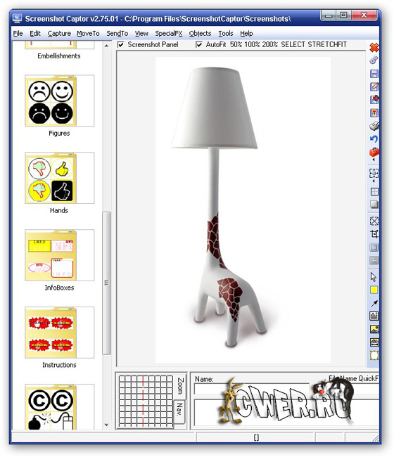 FastStone Capture - великолепная программа для создания снимков с экрана Вашего компьютера (скриншотов) и их последующего редактирования. Для этого в программу включен несложный в использовании графический редактор, позволяющий поворачивать, изменять размер, изменять глубину цвета, вырезать фрагменты и производить другие операции с картинкой. При снятии скриншотов доступны горячие клавиши, с помощью которых можно легко сделать скриншот активного окна, всего экрана или произвольной области.