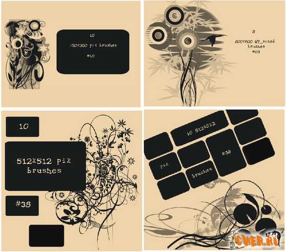 60 кисточек для PhotoShopа размером от 400 до 900 пикселей с градиентами Web 2.0 дизайна