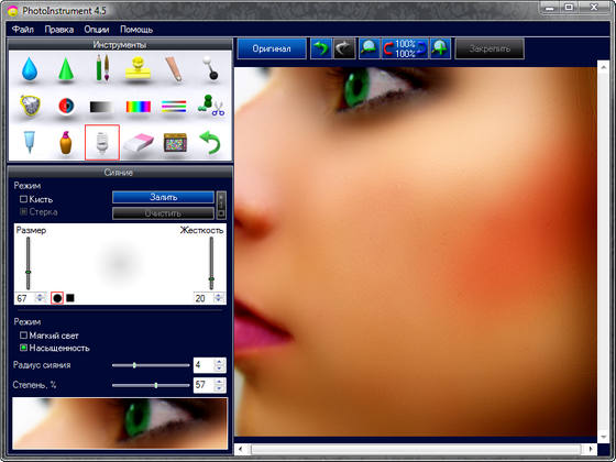 >PhotoInstrument - легкий редактор для обработки портретов цифровых фотографий. От Очистителя кожи до придания ему гламурного вида "глянцевых журналов", попутно включая инструменты для: ретуширования, удаления красных глаз, сглаживания морщин, увеличения чёткости, коррекции цвета и многого чего еще, для приданию портрету совершенного вида и желаемой привлекательности.
