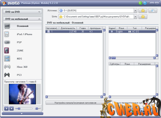 DVDFab Platinum – мощный, многофункциональный программный продукт для копирования DVD дисков с возможностями гибкой обработки видеопотока. Программа является одной из лучших на сегодняшний день, из инструментов для копирования, разбиения, пережатия и конвертирования DVD дисков с фильмами. Снимает все защиты и ограничения с диска и при желании пережмет диск большой емкости и вместит его в обыкновенную пустую DVD болванку с минимальными потерями качества (DVD9->DVD5) или разобъет фильм на два диска с полным переносом его меню, удалит всю рекламу, запишет только фильм и многое другое. Программа имеет интуитивно понятный, мультиязычный интерфейс включая русский.
