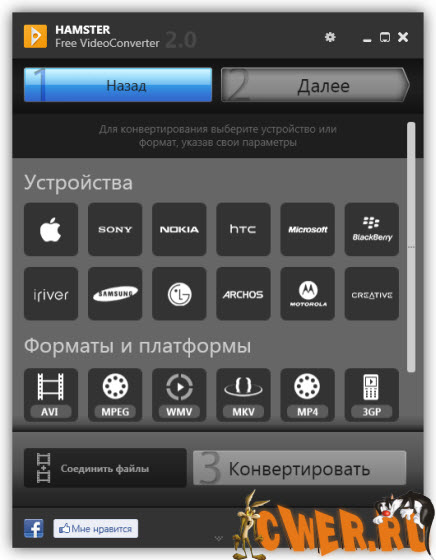 Hamster Free Video Converter является бесплатной и удобной утилитой для конвертирования видео, обладая при этом приятным интерфейсом. Поддерживает конвертирование видео файлов форматов 3GP, MP3, MP4, AVI, MPG, WMV, MPEG, FLV, HD, DVD, M2TS и другие форматы, используя встроенный видеоплеер и кодеки DivX+! Программа конвертирует любое видео для просмотра на iPod, iPad, iPhone, PS3, PSP, Blackberry, xBox, Zune, Apple TV, iRiver и других устройствах. Поддерживает более 200 устройств и пакетную обработку видео файлов. Имеет возможность менять кодеки и системные параметры всех популярных форматов видео. Вы можете настраивать битрейт для аудио и видео, частоту кадров и вырезать любой фрагмент.