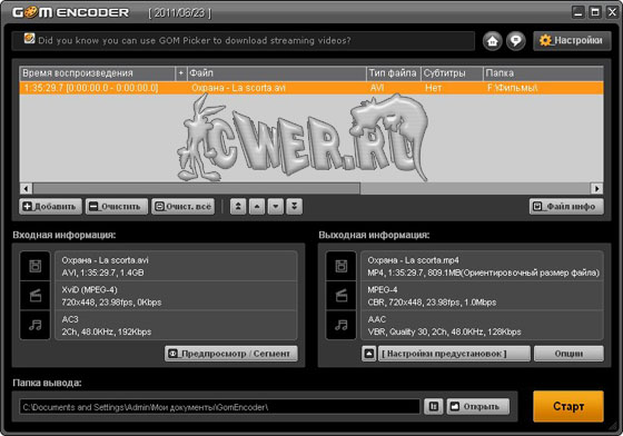 GOM Encoder - великолепный видео-конвертер из Кореи, новый продукт от производителей известного GOM Player, прославившегося у части мировой публики своим качеством. По заявлению разработчиков конвертирует всё, что может проиграть GOM Player, причем кодирование очень стабильное, и заточено на высокую скорость и совместимость с многоядерными процессорами.