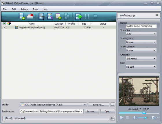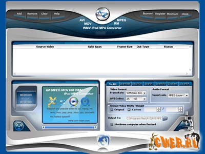 Ultra Video Converter - мощный и удобный инструмент для конвертирования, соединения и нарезки видео файлов, фрагментов, поддержка AVI, MPEG-1, MPEG-2, MPEG-4, VCD, SVCD, DVD, DivX, XVid, ASF, WMV и других видео форматов, выбор и настройка параметров конвертирования, нарезка и соединение отрезков с сохранением в выбранный формат и параметрами, подключение кодеков, поддержка файлов с размером больше 2GB.