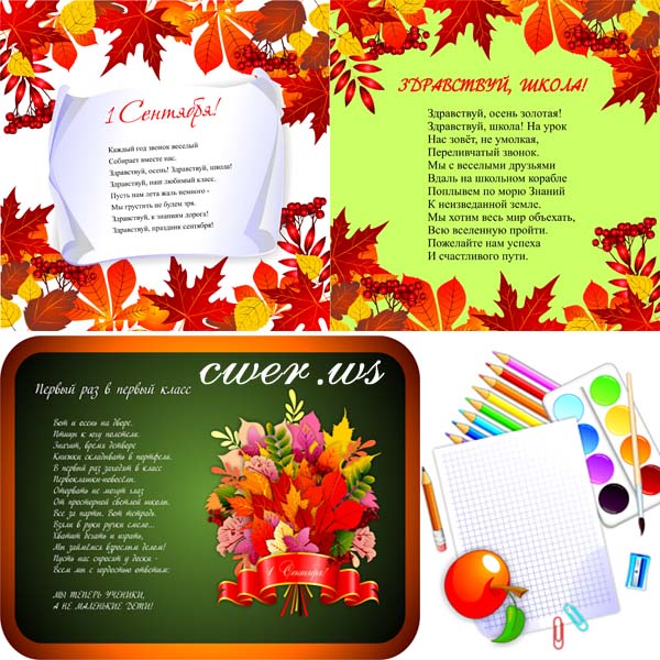 Яркие и красочные макеты шаблонов к празднику знаний. 7 шаблонов со стихотворениями к 1 сентября (текст конвертирован в кривые). 2 файла с чистыми шаблонами. 1 файл в формате CDR со стихотворениями (текст не конвертирован в кривые). Каждый для себя найдет то, что ему нужно. Вам понадобится немножко фантазии и элементарные знания графического редактора.