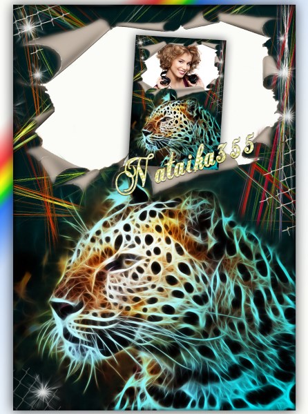 Многослойная рамка с дикими кошками для оформления женского фото.