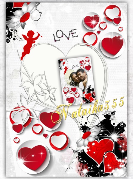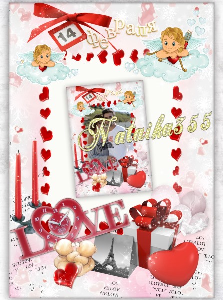 Романтическая фоторамка с ангелочками и сердечками ко дню святого Валентина, все элементы на отдельных слоях.