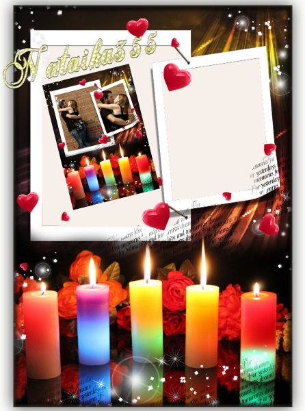Многослойная фоторамка для оформления двух фото с романтического свидания влюбленной пары.