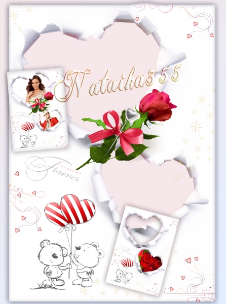 Многослойная фоторамка с вырезами для фото в виде сердечек, можно использовать для признания в любви.