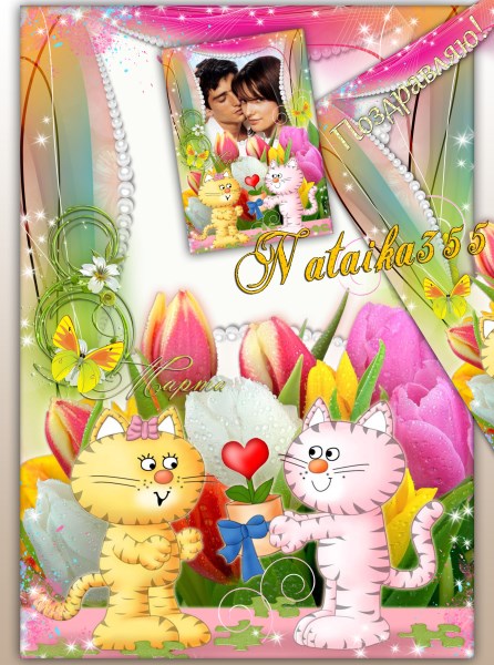 Многослойная женская фоторамка ко дню 8 Марта или поздравления с другими праздниками.