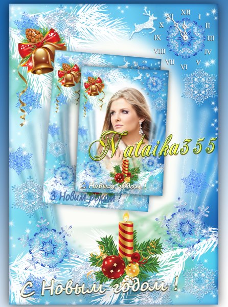 Новогодняя фоторамка со снежинками и еловыми ветками для украшения ваших фото.