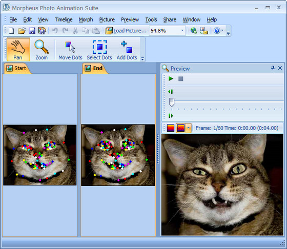 Morpheus Photo Animation Suite - мощный программный пакет, сочетающий в себе все возможности создания морфинга, создающего плавный переход из одного объекта фотографии в другой.