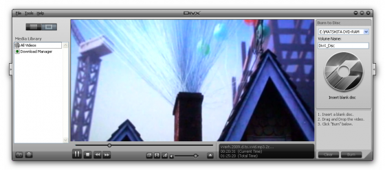 Пакет программ, содержащий в себе всё для проигрывания формата DivX видео, а также инструменты для создания видео в этом формате. C помощью входящей в этот пакет программ вы сможете закодировать ваш видео ролик в формат DivX видео, а при помощи DivX Converter'a вы сможете конвертировать любые видео ролики в формат DivX.