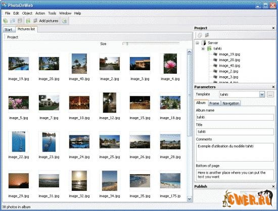 Jalbum - программа для автоматического создания веб-галерей. Для этого достаточно мышкой перетащить в окно программы папку с картинками, и она сгенерирует галерею с уменьшенными копиями изображений (или Slide-Show вариант). Впрочем, возможен и ручной режим работы с полным контролем над создаваемым проектом, в том числе с использованием имеющихся фильтров изображений, настройкой стилей, использованием данных IPTC/EXIF и т.п.