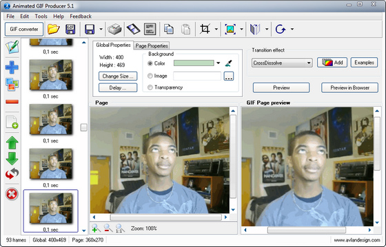 Animated GIF Producer - это быстрая и легкая в использовании программа для создания различных анимаций, кнопок и баннеров, которые потом могут быть размещены на вашем веб-сайте. Вам больше не нужно тратить деньги на покупку комплексных видео обрабатывающих платформ для того, чтобы создать простую анимацию в формате GIF. С помощью данной программы вы сможете с легкостью создать GIF анимацию, кнопку или баннер для вашего сайта за считанные минуты. Интерфейс программы построен таким образом, что все функции программы находятся всегда рядом, когда они вам могут понадобиться. Вы сможете добавлять и обрабатывать изображения, организовывать их в последовательности и многое другое. Программа позволяет добавлять изображения напрямую из буфера обмена. Для этого также существует функция захвата экрана для снятия скриншотов из видео файлов. Вы также сможете экспортировать GIF анимацию в видео формат AVI.