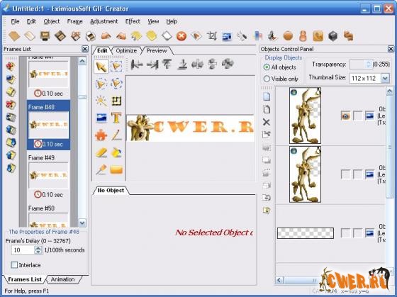 EximiousSoft GIF Creator - мощная, надежная и простая в использовании программа для создания анимированных GIF изображений, включая баннеры и аватары. Несмотря на небольшой размер, программа имеет многочисленные инструменты, позволяющие не только создавать новое изображение непосредственно в окне редактора, но и использовать для этого готовые видеофайлы и секвенцию графических файлов. Эта программа поддерживает множество форматов, включая GIF, AVI, BMP, PCX, JPG, TIFF, PNG, TGA, PSD, ICO, CUR, ANI, SWF и другие. Программа позволяет пользователю работать со слоями изображений, а также накладывать эффекты на выбранные изображения, а также изменять яркость, контраст и насыщенность картинки. Кроме того, с помощью этого инструмента вы сможете максимально оптимизировать качество изображения для уменьшения размера готового файла анимации. Интерфейс программы удобен и прост в использовании.