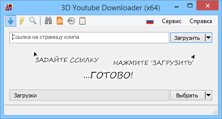 3D Youtube Downloader - программа, которая предназначена для загрузки видео клипов и аудио дорожек с таких популярных сервисов, как Youtube, Daily Motion, Vimeo и др. Приложение анализирует список доступных файлов с подробной информацией о качестве и, в зависимости от текущего режима, автоматически выбирает необходимый файл для загрузки либо предоставляет возможность выбора пользователю.