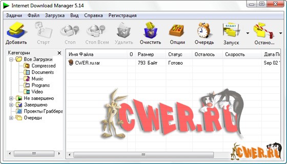 Internet Download Manager - предназначен для организации загрузок файлов из Интернет. Различные методы ускорения загрузки, динамическая сегментация файлов и одновременное скачивание нескольких частей, использование свободных открытых подключений без реконнекта и многое другое. Встроенная звонилка для соединения по расписанию. поддержка файрволлов, прокси и зеркал, FTP and HTTP protocols, редиректов, куки, очередей закачки, авторизации пользователя. Internet Download Manager интегрируется в Microsoft Internet Explorer, Netscape, MSN Explorer, Opera and Mozilla и автоматически перехватывает закачки. Зачастую увеличивает скорость скачивания на 500%. На странице программы есть диаграммы тестов с другими менеджерами закачек.