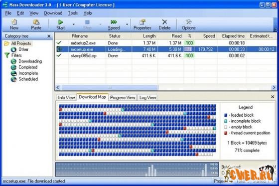 Вышла новая версия менеджера закачек Mass Downloader, который позволяет пользователям загружать отдельные файлы или целые списки файлов с сайтов или ftp-серверов с максимально возможной скоростью и удобством. Высокая скорость работы достигается за счет распараллеливания скачиваемых потоков. Помимо стандартных функций (многопоточная закачка, встроенный ftp-браузер, работа по расписанию, поддержка прокси и т.д.) есть полезная функция просмотра zip-архивов на сервере и скачивание только нужных файлов из архива. Программа с поддержкой русского языка и возможностью встраивания в популярные браузеры.