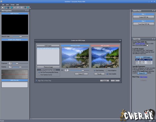 Dynamic Photo HDR — программа для создания динамических HDR фотографий и позволяет добавлять к ним различные эффекты. Основными ее особенностями являются простота использования, замечательные результаты и возможность создания HDR из одной фотографии. Последнее будет особенно полезно для владельцев фотокамер без функции автобрекетинга. Программа умеет работать с файлами формата RAW, полученными с разных цифровых камер. Так же позволяет корректировать изображения по ключевым точкам вручную и автоматически. Обладает такими возможностями, как автоматическая подгонка изображений, ручная корректировка по ключевым точкам, преобразование диапазона яркостей HDRI к диапазону яркостей, отображаемых монитором. В дополнение к этому Dynamic Photo HDR поддерживает некоторые интересные эффекты - преобразование в черно-белые снимки или эффект Ортона. В программе также есть метод для улучшения изображения, работающий на основе разных тонов.