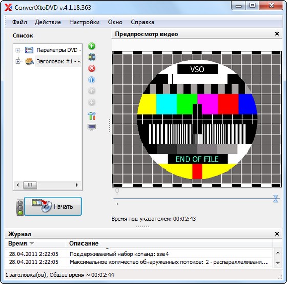 VSO ConvertXtoDVD - программа предназначена для преобразования видео в формат, совместимый с DVD Video, и последующей записи содержимого на DVD. Создавайте DVD из различных видео форматов, чтобы смотреть их по телевизору на любом DVD плеере. ConvertXtoDVD был разработан так чтобы Вы ни о чём не думали. Добавьте 1 или несколько видеофайлов, вставьте пустой DVD и Ваши видеофайлы будут автоматически конвертированы и записаны на DVD с главами и изящным меню DVD. Не нужно никаких внешних кодеков.